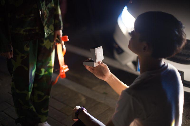 近日在广州大学城上演了一场军训新生求婚。一辍学创业的90后CEO为求婚刚上大一、还在军训的初恋女友,竟动用多辆豪车现场奏乐,并且为女友献上钻戒。满满的土豪气息和“韩剧即视感”让在场的大学生们羡慕。据悉,该男子之所以急着向女友求婚,是为了防止女友大学期间被师兄们抢走!