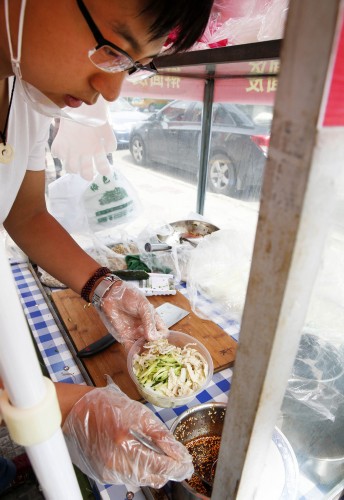 西安交通大学南门对面的金水路路口,一个名为“小庄师兄”的凉皮摊位吸引了市民张先生的注意,这个只有一辆生锈的三轮车、一张案板、一把遮阳伞、一张桌子、4把凳子的摊位,却拥有一名“英语口语很棒”的老板。