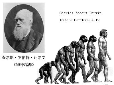达尔文——英国生物学家、进化论的奠基人。出版《物种起源》,提出了生物进化论学说,从而摧毁了各种唯心的神造论以及物种不变论。除了生物学外,他的理论对人类学、心理学、哲学的发展都有不容忽视的影响。