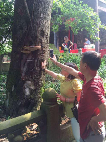 6月30日消息,重庆合川,在位于合川古钓鱼城的护国寺内,有一株树龄800年的金桂。近日,游客们惊奇地发现,在古桂花树离地约1.7米处,长出了一对碗口大的“灵芝”。更奇特的是,如果把手轻轻抚在树干上,“灵芝”就冒出袅袅烟雾! 时而飘渺,时而消失,让人啧啧称奇。