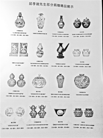 7月13日,香港实业家、北师大校友邱季端向母校北京师范大学捐赠了6000件中国古代陶瓷藏品。据媒体报道,这些藏品包括从两汉魏晋到宋元明清,各个朝代、窑口的具有代表性的陶瓷精品,很多都是稀世珍品,在国内独一无二。北师大就此宣布成立中国古陶瓷博物馆和中国古陶瓷与中国古代文明研究院,任命邱季端为首任馆长和研究院院长。这并不是邱季端第一次对北师大进行捐赠,他曾在2006年捐资该校2000万元建起“邱季端体育馆”。
