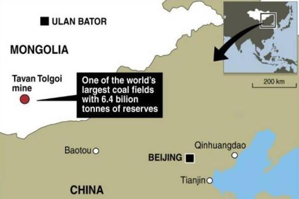 陶勒盖煤矿地理示意图TT矿距离中蒙边境直线距离约为180公里,距离中国甘其毛都口岸约245公里,探明储量约15亿吨,预计储量超过64亿吨,是目前世界上尚未完全开发的最大露天焦煤矿之一,且品质十分优良。同时,TT矿项目还是蒙古国内第二大矿产开发项目,仅次于奥尤陶勒盖铜金矿项目。