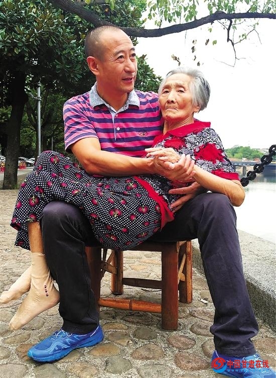 张永康说,自己做的这一切,不值一提,“因为小时候妈妈就是这样抱着我,现在轮到我抱着她了。”(来源:中国新闻网)