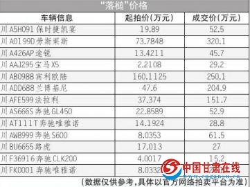 起 拍 价2.2万元的刘汉案宝马车最终拍价超 29万元。