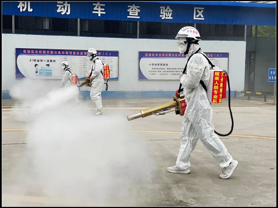 中国甘肃在线(通讯员孟明春)为了进一步加强各项疫情防控工作,切实降低病毒传播风险,保障业务办理工作在安全有序中进行。10月25日上午,武都区公安局交警大队联合陇南方舟救援队对车驾管业务大厅、办案场所、公共区域等地进行了全域空间消杀工作,确保人员密集场所环境安全。