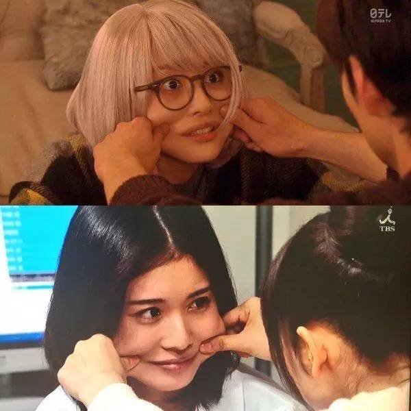所以捏脸颊这招到底有多受欢迎?看现在一堆日剧出现的频率就知道,连新垣结衣也被捏脸颊啦!