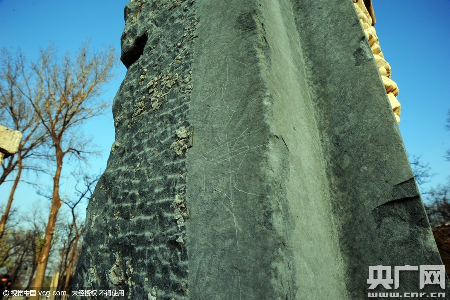 2015年11月29日,北京,圆明园遗址公园内西洋楼遗址出现了不少游客不文明留念,除了最常见的“留名”之外,甚至还有人写上即兴“谴责”八国联军的句子