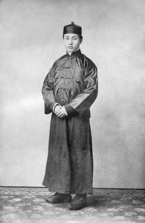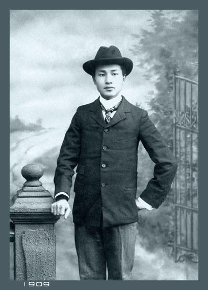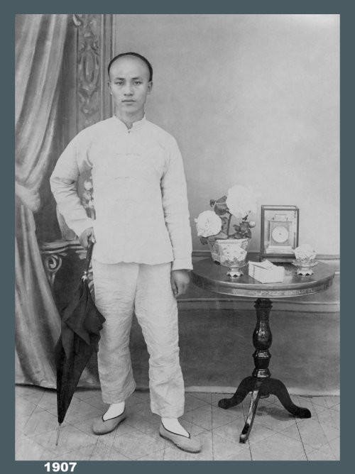 而到了1905年,又回归到了中式传统的盘龙布扣!看似中庸而传统,但上方层次感丰富的背发油头和脚上的高帮亮面皮鞋出卖了他,眉宇清秀,好似偶吧!