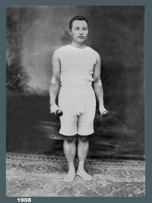 健身婊,你们的祖师爷在此,还不跪下!一个大背油头,手着哑铃身着背心,健康富有情调的lifestyle,你复的古都是他在1908年引领的潮流!