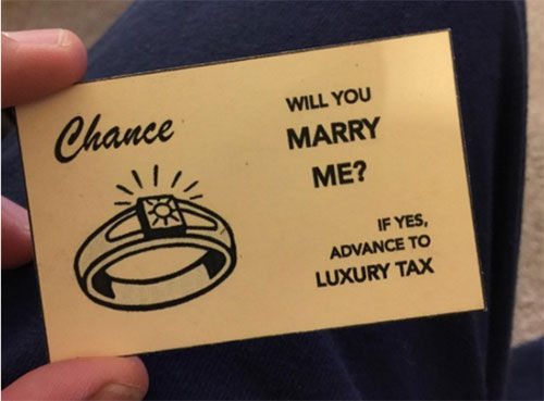 为了确保求婚成功,他特意在游戏中设计了一张机会卡,对应棋盘的第七格,上面写着“你愿意嫁给我吗?”