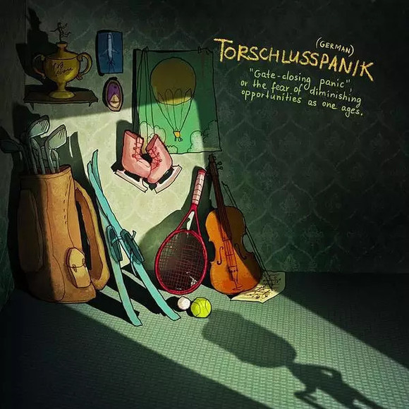 12. Torchlusspanik(德语)关门恐慌年纪大了,对机会减少的恐惧。