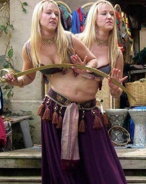 这一对连体姐妹比上面两对都要好很多,至少她们共享两条腿,这样可以自由活动。