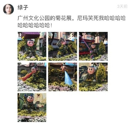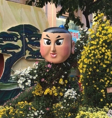 据说是广州文化公园的菊花展,被脚踏五彩祥云身披菊花金甲脸若新疆烤馕的葫芦兄弟吓哭了…