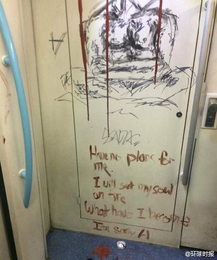 你们这些歪国人啊,能不能靠谱一点?【外籍少年在上海地铁画半裸人像被批评教育】近日网友反映,上海地铁某车厢的墙面上有黑色涂鸦,内容为半裸人像和流着血的眼睛,下面还写着摇滚歌词。上海地铁表示,经过对监控录像的回放查看,涂鸦者已被找到,系一名外籍未成年人,其行为涉嫌破坏公物和违反轨交相关条例。