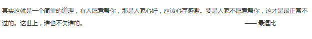 传说今天的V脖火了一篇叫#致贱人:我凭什么要帮你#的文章。如果抛开这是不是个软广不谈,这文章倒是也写进了不少人的心坎儿里。