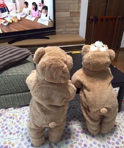 网上一麻麻分享了家里俩娃看电视的场景…大早上的我萌到虚脱。