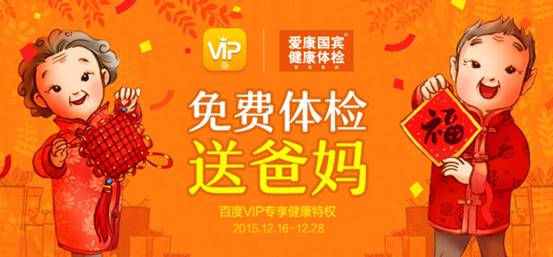 据悉,百度VIP用户在活动期间,可下载百度VIP app,或通过百度VIP官方网站,也可以在百度搜索“百度VIP体检”三种方式进行参与。用户在活动页面可参与0元许愿价值千元健康体检套餐卡活动,1元许愿iPhone 6 plus、金条活动,同时参与免费抽奖更有机会获取年终健康好礼。此次活动共计为百度VIP用户免费发放价值300万的健康权益,为百度VIP会员及其家人提供免费体检的机会,以健康关怀的暖心形式为用户送。