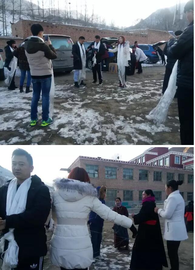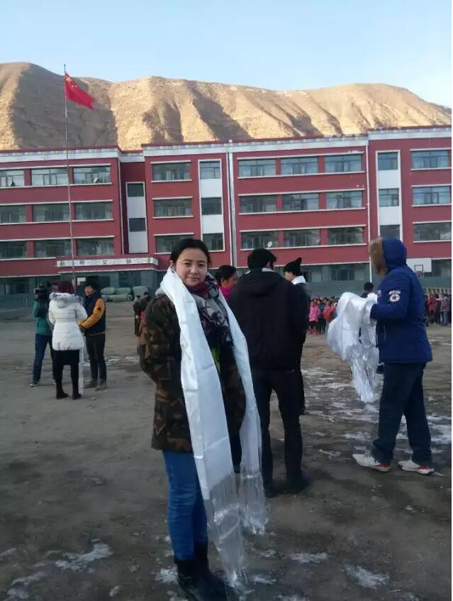 在校老师为我们爱心团队工作人员献上白色的哈达