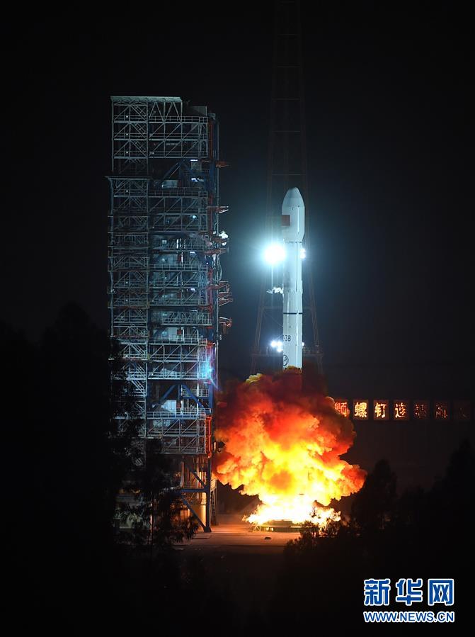 这是搭载“高分四号”卫星的长征三号乙运载火箭发射升空(12月29日摄)。
