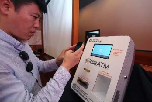 2014年4月,中国首台比特币ATM机出现在上海张江的一家咖啡店内,吸引不少比特币玩家前来兑换。中新社张亨伟 摄