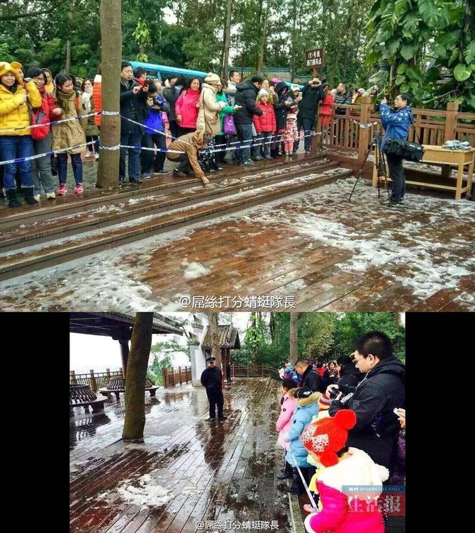 广西民众为了看最后硕果仅存的一点雪,竟然拦上了警戒线排队参观