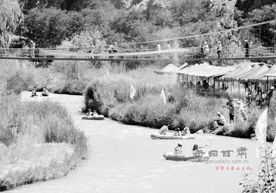 炎炎夏日,玉门赤金峡4A级水利风景区成为酒嘉地区市民避暑纳凉的最佳去处。进入7月以来,每天都有近千名游客到赤金峡泼水嬉戏,清凉度夏,体验长达9公里的河道漂流。图为游客正在漂流。本报首席记者董开炜摄...