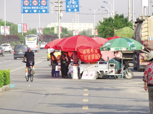 在安宁农大西侧滨河路的非机动车道上,十几个卖桃子的摊贩一字排开,占据非机动车道叫卖。过往的行人和自行车都只能绕道行驶,影响交通。希望有关部门进行治理,保证这一路段的通行。记者马朋艺摄...