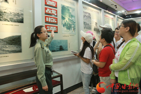 23日,参加“高校师生暑期红色之旅”的师生在梨园口战役纪念馆参观。本网记者 李秀清 摄  中国甘肃网7月23日讯 (本网记者 李秀清) 23日,2015甘肃省“高校师生暑期红色之旅”活动的第三日,参加此行的34所高校...