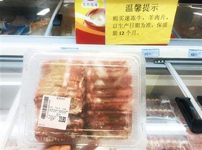 昨日,甘露园物美超市,出售的冷冻羊肉片上只有包装日期,没有标注生产日期。新京报记者 薛珺 摄新京报讯 “80后”缉私员查获“70后”冻肉、南宁警方查获1967年走私鸡爪……近日,多家媒体报道了海关查获“僵尸肉”...