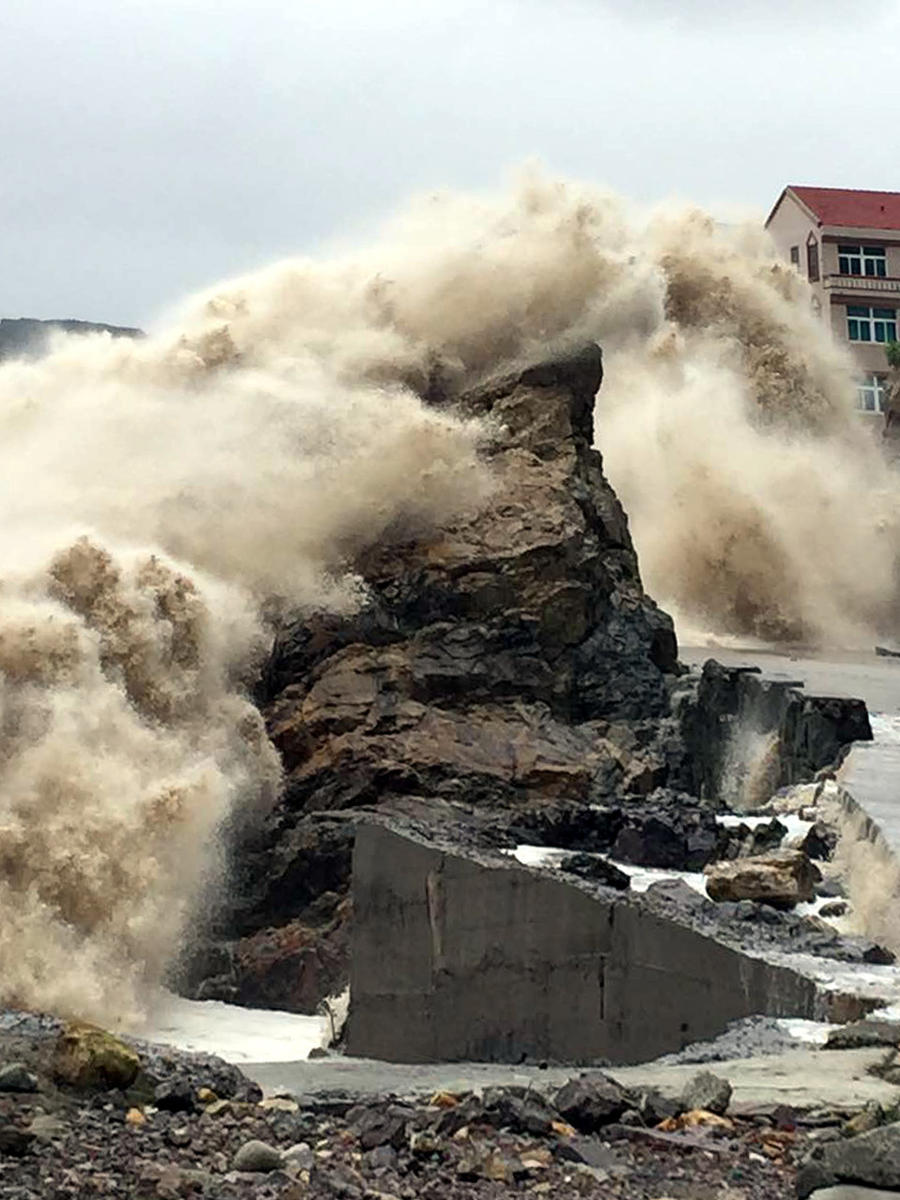 2015年7月10日,受今年第9号台风“灿鸿”影响,浙江温岭市石塘镇沿海风大浪急,普遍出现8至11级大风。...