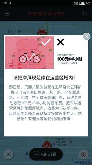 • 租自行车3小时收600元 客服称没有在规定区域内停车