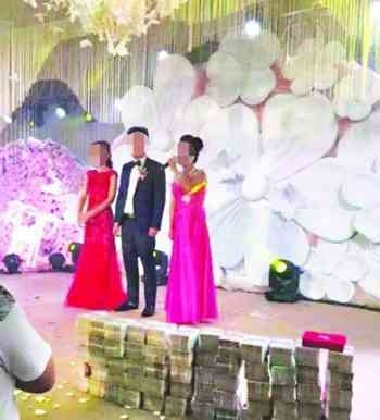 网络配图  【福建土豪办婚礼】一对新人结婚,赤橙黄绿青蓝紫7辆不同颜色的超跑,护送新郎、新娘到婚礼现场,男方给女方的600万元礼金直接用现金摆放在婚礼台上。近日,福建长乐江田镇三溪村一场“土豪”婚礼的...