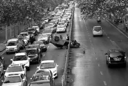 华商报讯(记者 赵国强)昨日上午,市民孙先生报料称,8时55分许,一辆别克轿车沿西五路由西向东行驶,行至交大二附院东侧约100米处时,左前轮突然爆胎,撞上了路中间的隔离栏翻车,约20米长的隔离栏被撞倒...