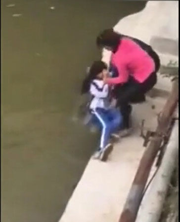 近日,网络上流出一段视频,一名中年女性抓着一名穿校服女孩的手,作势将其推进河中训斥,女孩几次险些被推入河中,连连哭叫不止。...