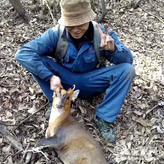叶某捕猎成功后的“自拍照” 上面这张照片在微信朋友圈中很火。 照片中的男子坐在地上,右手抓住一只被捕获的动物,左手摆出“V”字手势,正在洋洋得意。 但他想不到,他在网络上秀出的这张照片,把他“秀...