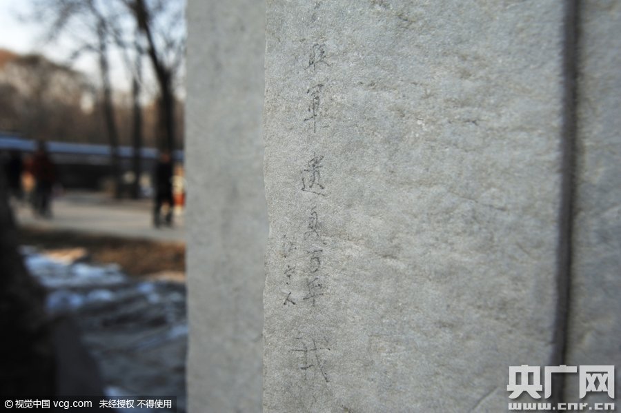 2015年11月29日,北京,圆明园遗址公园内西洋楼遗址出现了不少游客不文明留念,除了最常见的“留名”之外,甚至还有人写上即兴“谴责”八国联军的句子  2015年11月29日,北京,圆明园遗址公园内西洋楼遗址出现...