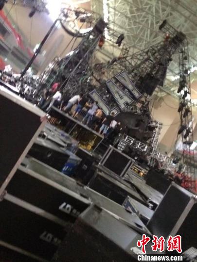 坍塌现场。 网络摄坍塌现场。 网络摄中新网南宁10月29日电 (记者王刚) 10月29日下午五点多,广西体育中心内,正在为蔡依林演唱会搭建的舞台灯架突然坍塌。目前已有1人死亡,10多人受伤。警方披露,已有相关人员被控...