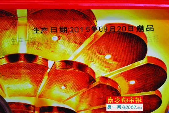 月饼盒正面生产日期旁有另一串字迹模糊的生产日期,两个日期有冲突。  南都讯 记者余元锋 刚刚大学毕业的小周为单位买中秋节月饼,因为贪便宜,从利口福(广州酒家)月饼厂员工李某手中买到所谓“内部月饼”,包装铁...