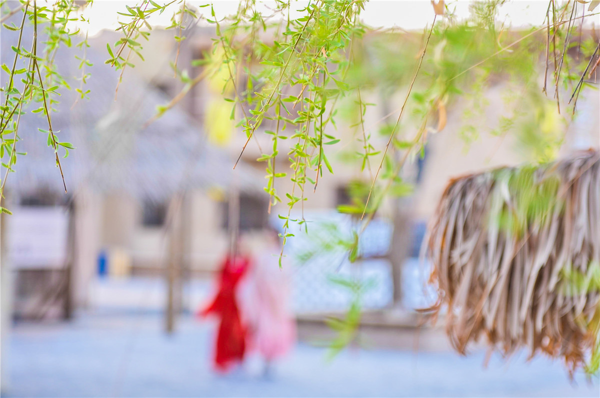 漫步和风细柳中。
