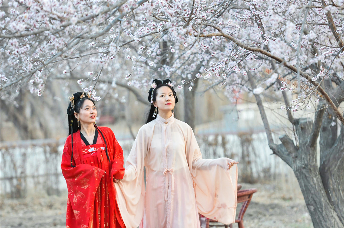 四月,一个浪漫而多风的季节,甘肃敦煌鸣沙山下千亩杏花盛开,位于鸣沙山下的月牙泉小镇正坐落在一大片杏花林之中,古镇、杏花、红衣女子组成一幅幅迷人的古镇风情画。