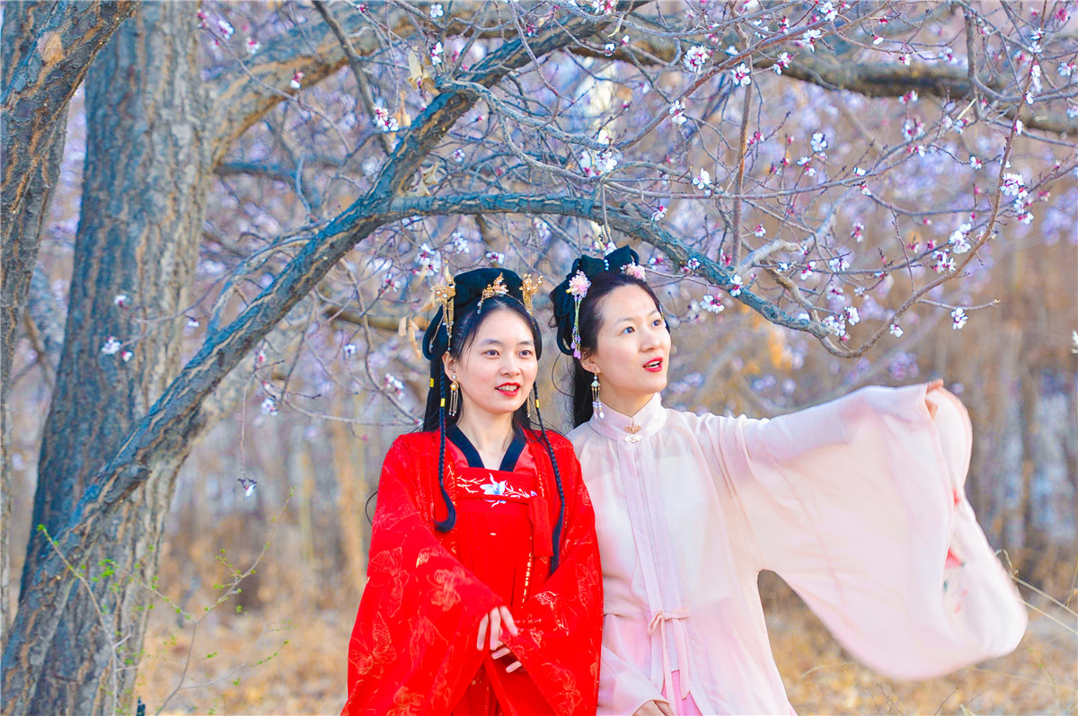 杏花红衣相映红。
