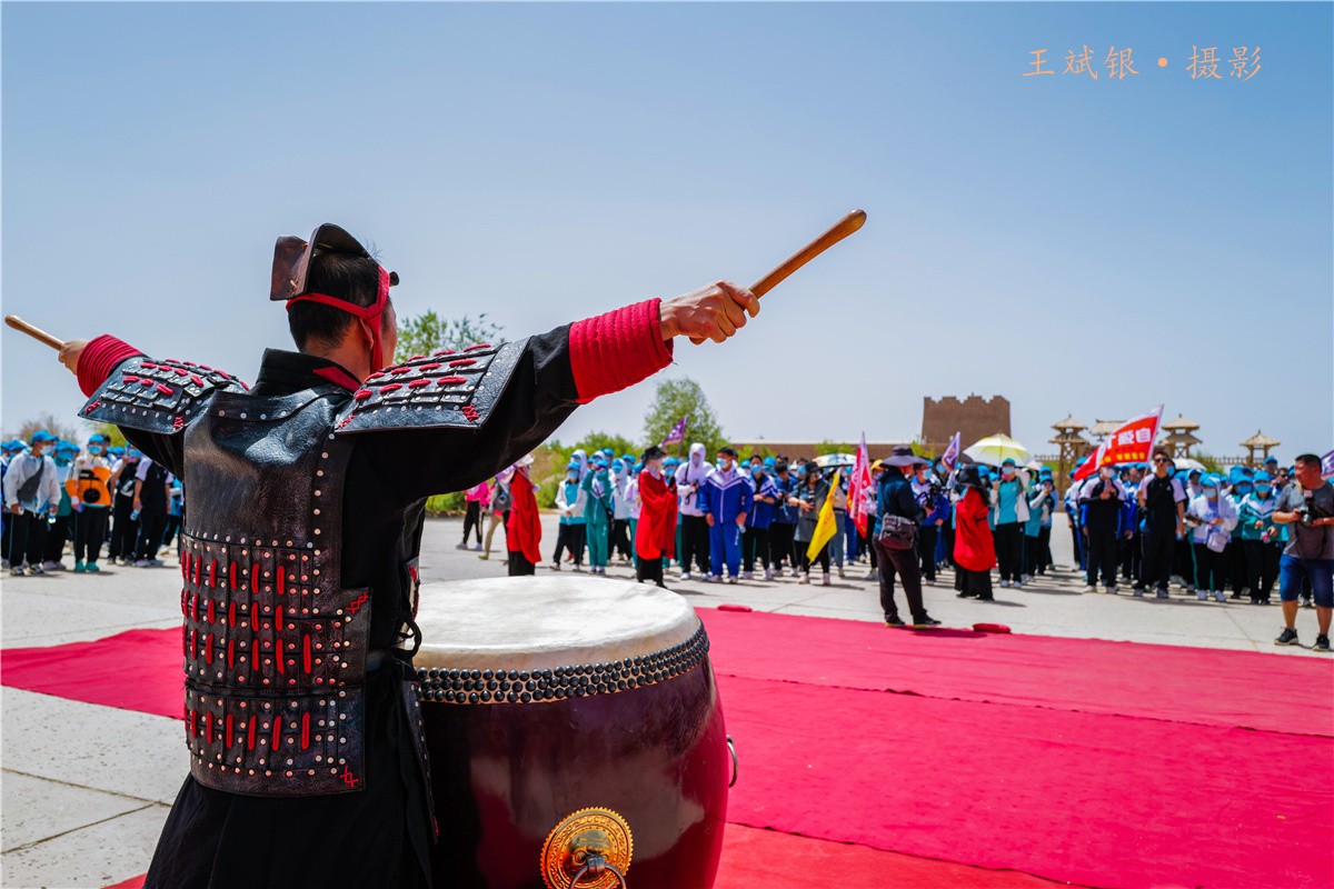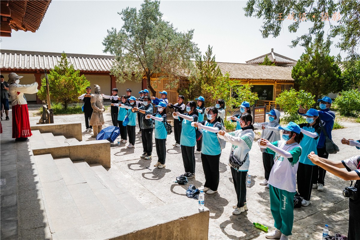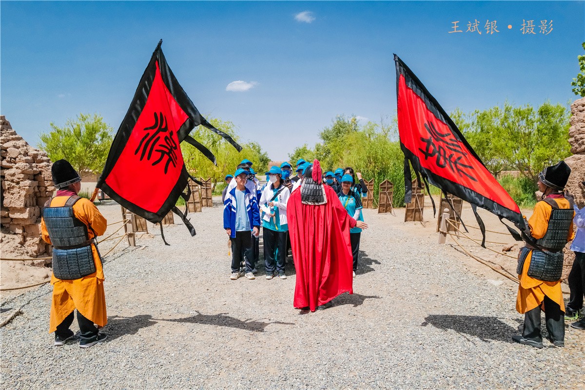 陆续到来的研学旅行团成员受到阳关景区独特入关仪式的盛情迎接。