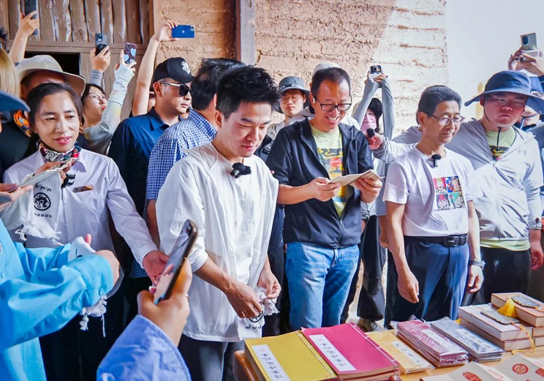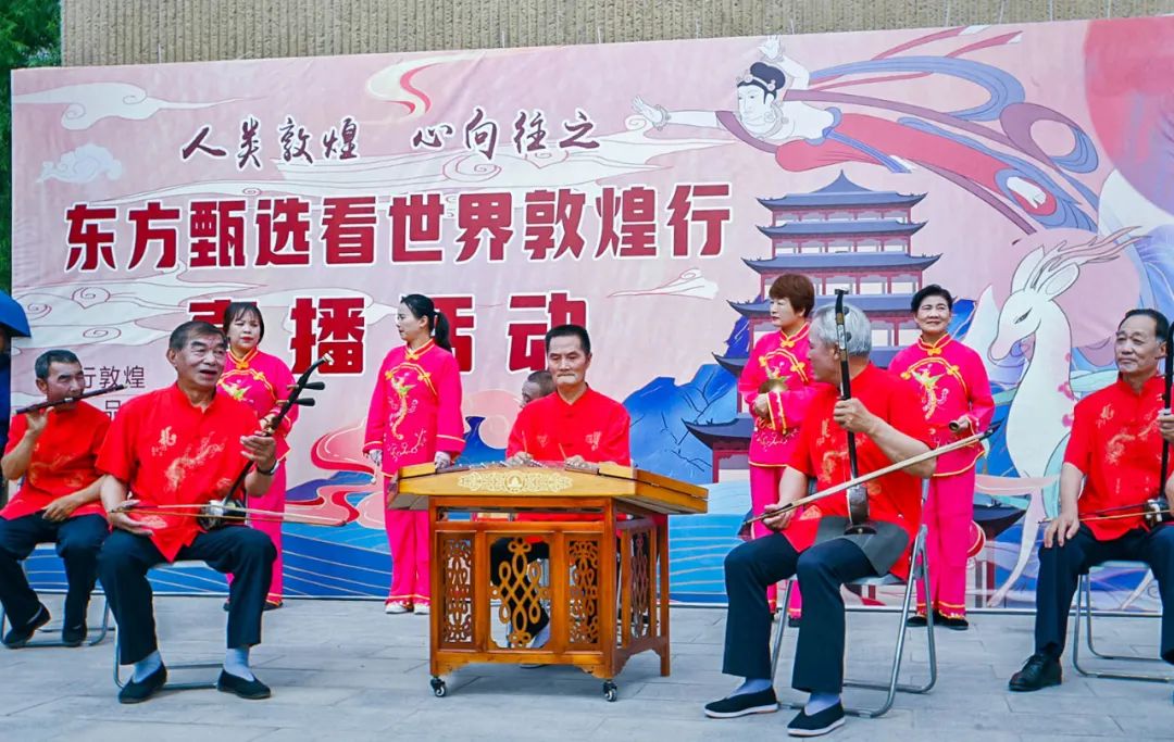 在敦煌博物馆民间艺人唱起敦煌曲子戏迎接东方甄选看世界甘肃专场直播团队。