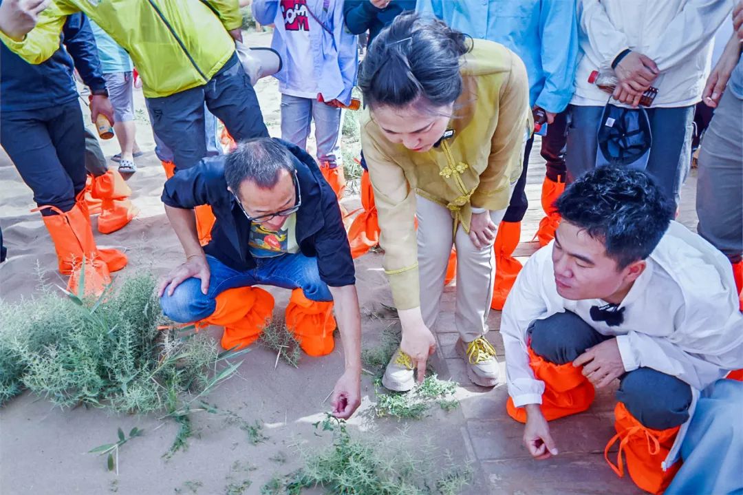7月9日早上,鸣沙山下《千手千眼》演员们摆出最美的舞姿迎接东方甄选看世界甘肃专场直播团队的到来。