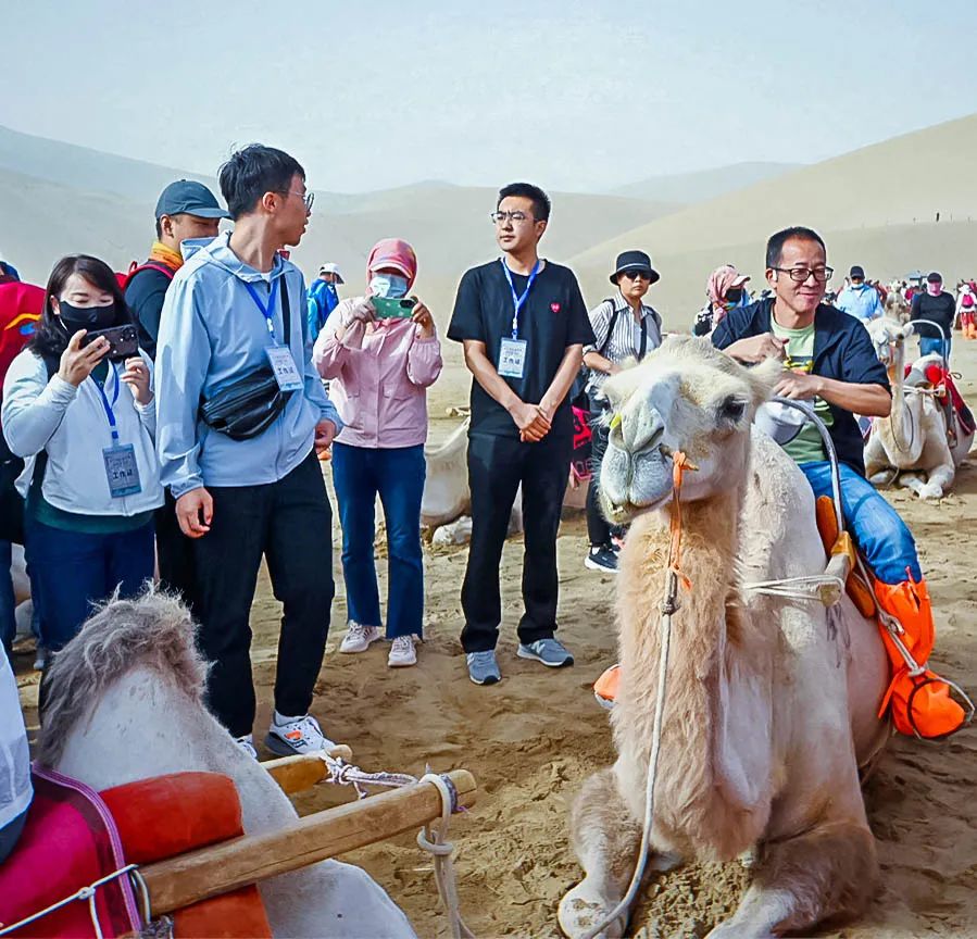 俞敏洪老师试骑敦煌骆驼。