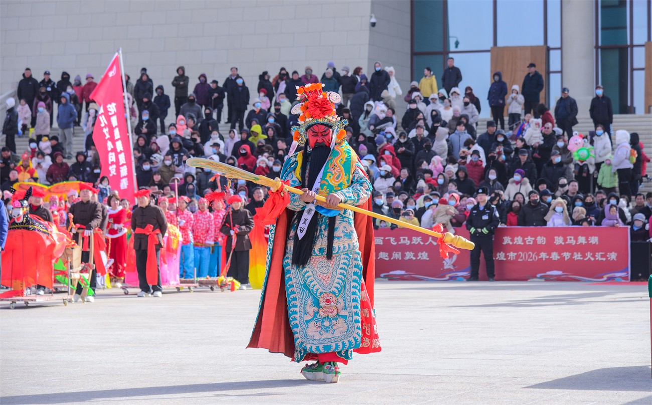 2026年2月10日,2026年“敦煌古韵骏马舞潮”春节社火汇演在敦煌国际会展中心广场上火热举行。本次社火汇演由敦煌市委、敦煌市政府主办;敦煌市文旅局、市文化馆、市体育活动中心、市非物质文化遗产保护中心、各镇、各企事业单位共同承办;团市委、市公安局、市卫健局、市消防救援大队、市融媒体中心协办。(王斌银 周玉玲 文/摄影)