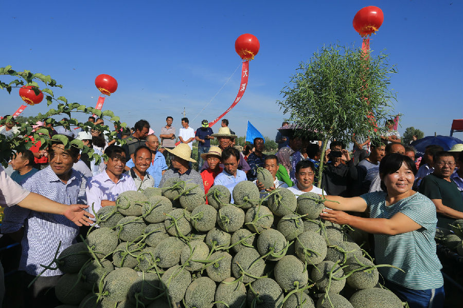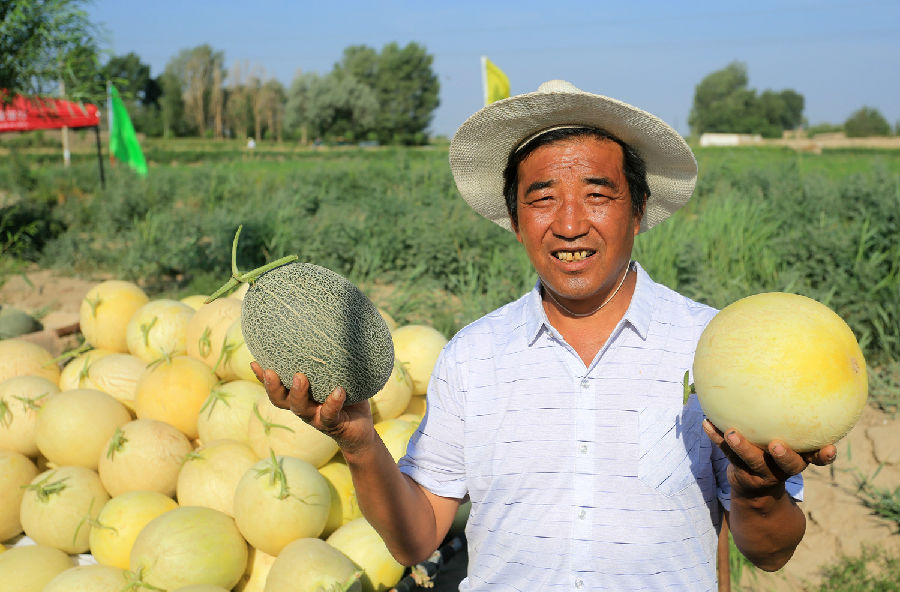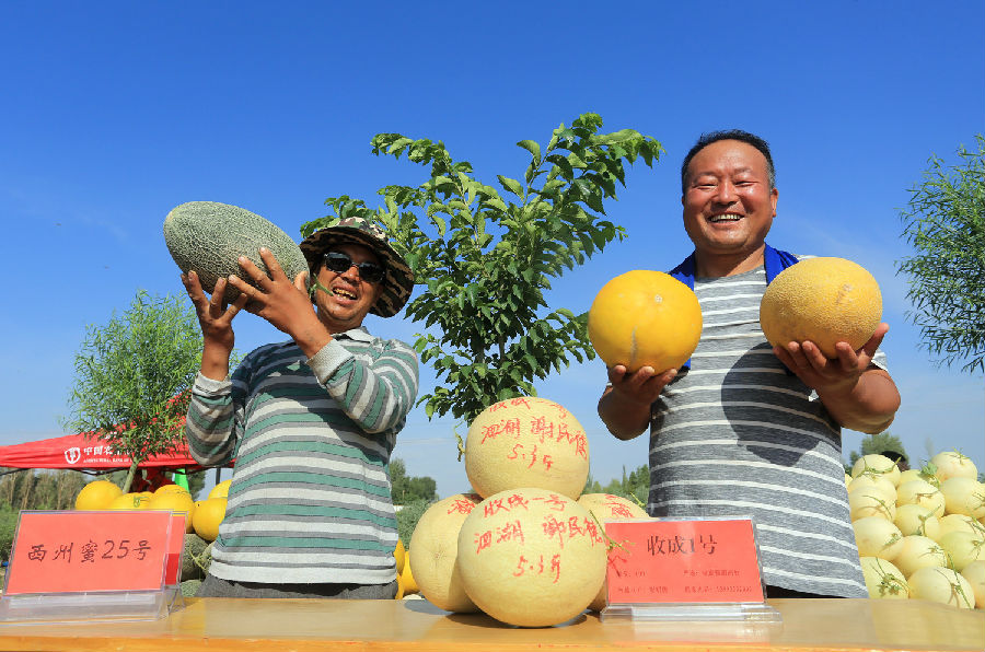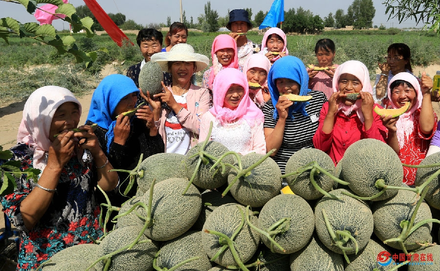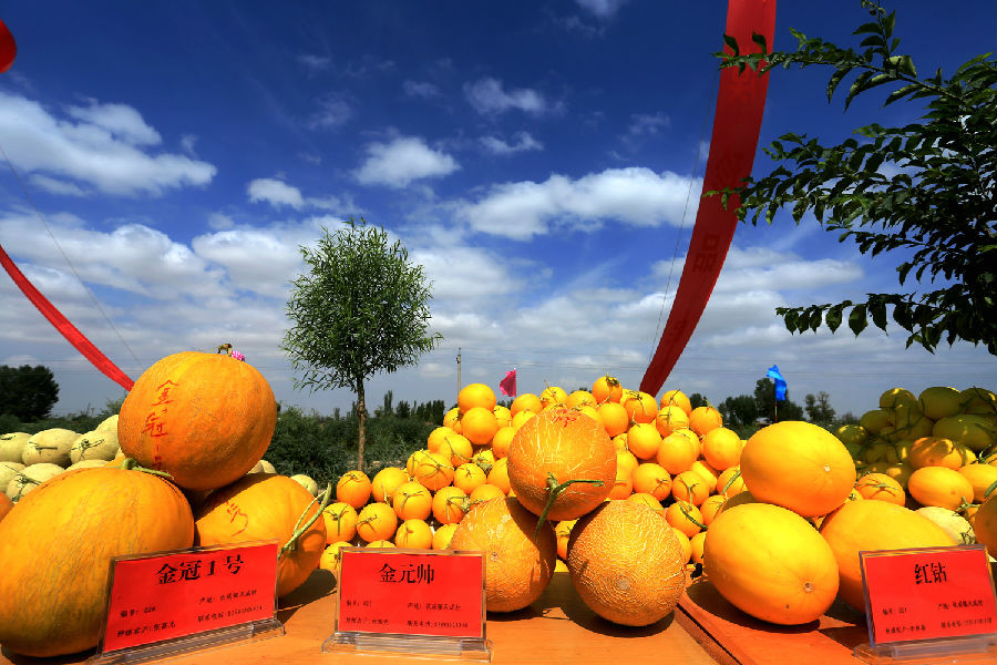 据悉:近年来,民勤县以绿色有机为方向,引进培育新特品种,推进标准化、无公害栽培,已经形成5大系列、100多个品种的蜜瓜优势集群。备受市场青睐。民勤蜜瓜”系列产品以其肉嫩汁多、气味芳香、含糖量高、品质优良、风味高雅、耐贮运等特点,受到消费者的青睐,是止渴、解暑的上乘佳品,素有“民勤蜜瓜甲天下”之美誉。目前,民勤县蜜瓜种植面积5万多亩,建成“源头可溯、全程可控、公众可查”的“互联网+绿色甜瓜”示范点500多亩、有机蜜瓜基地360亩。蜜瓜产品年实现收入1.5亿元,远销全国各大中城市及港澳台地区,成为强农富农的“金瓜”“银瓜”。