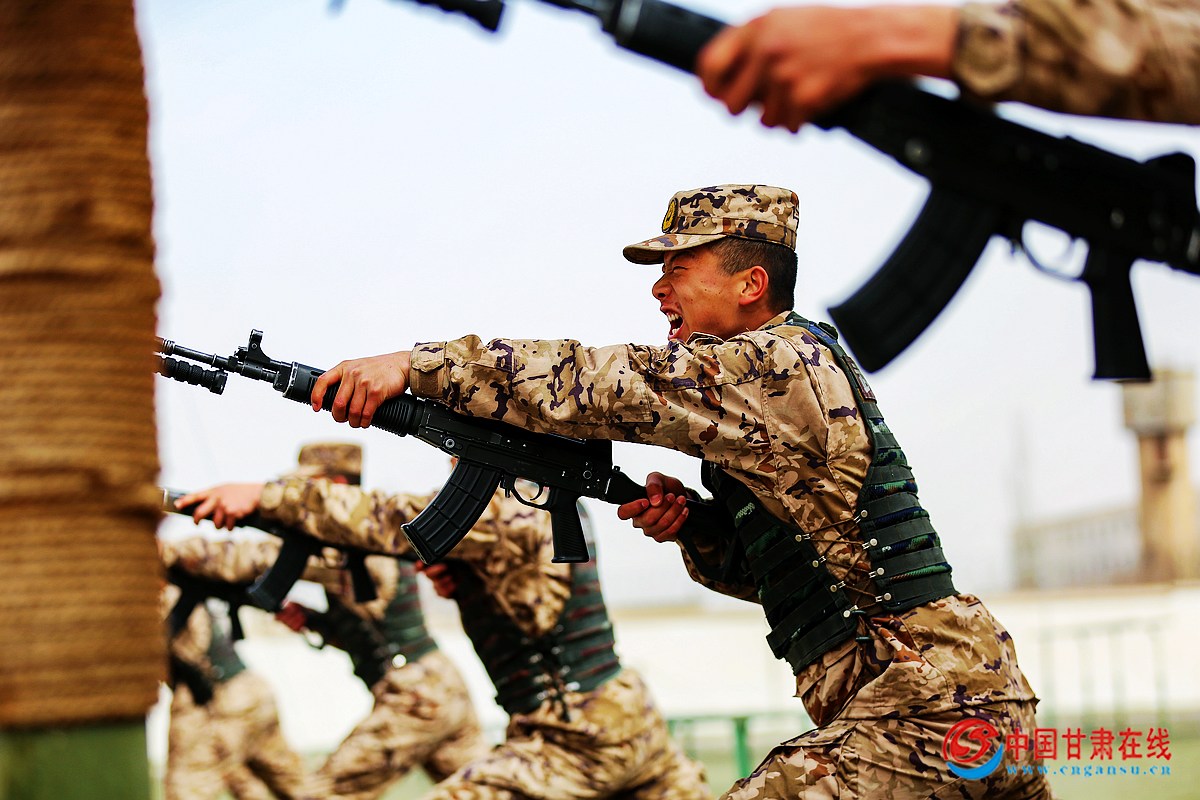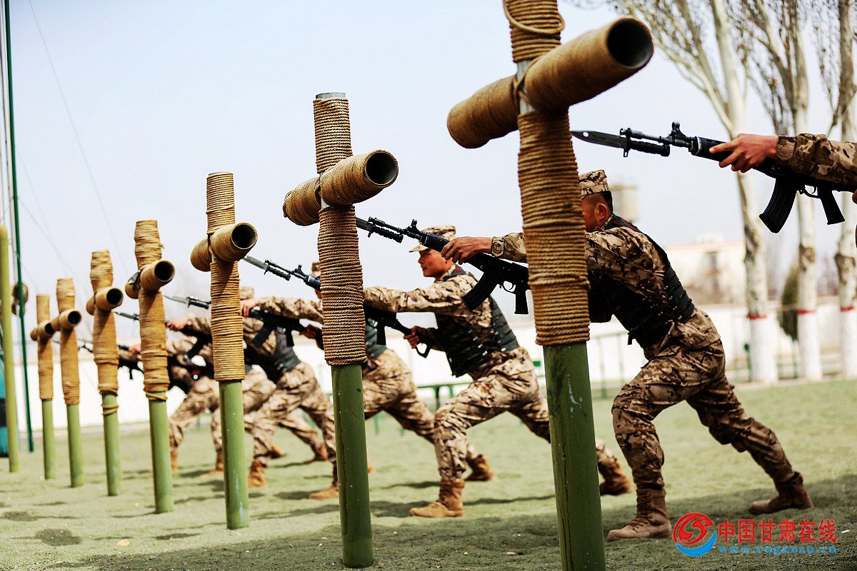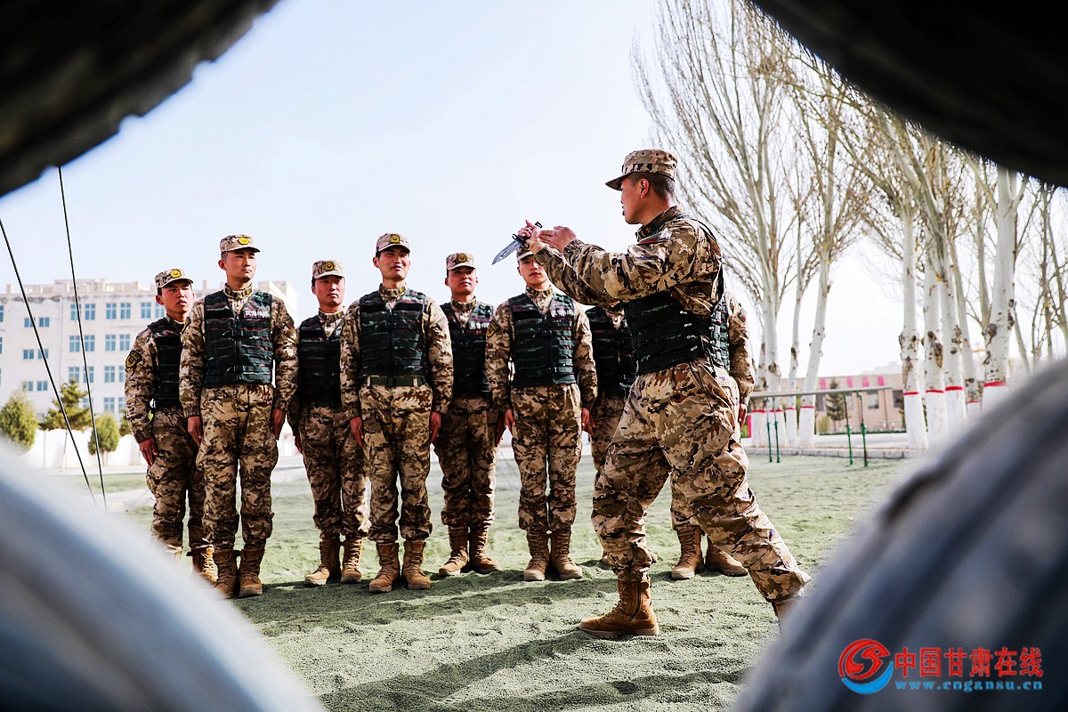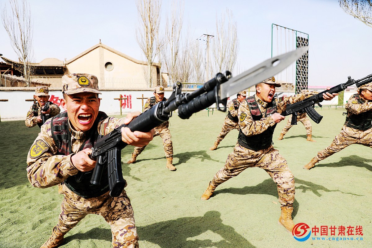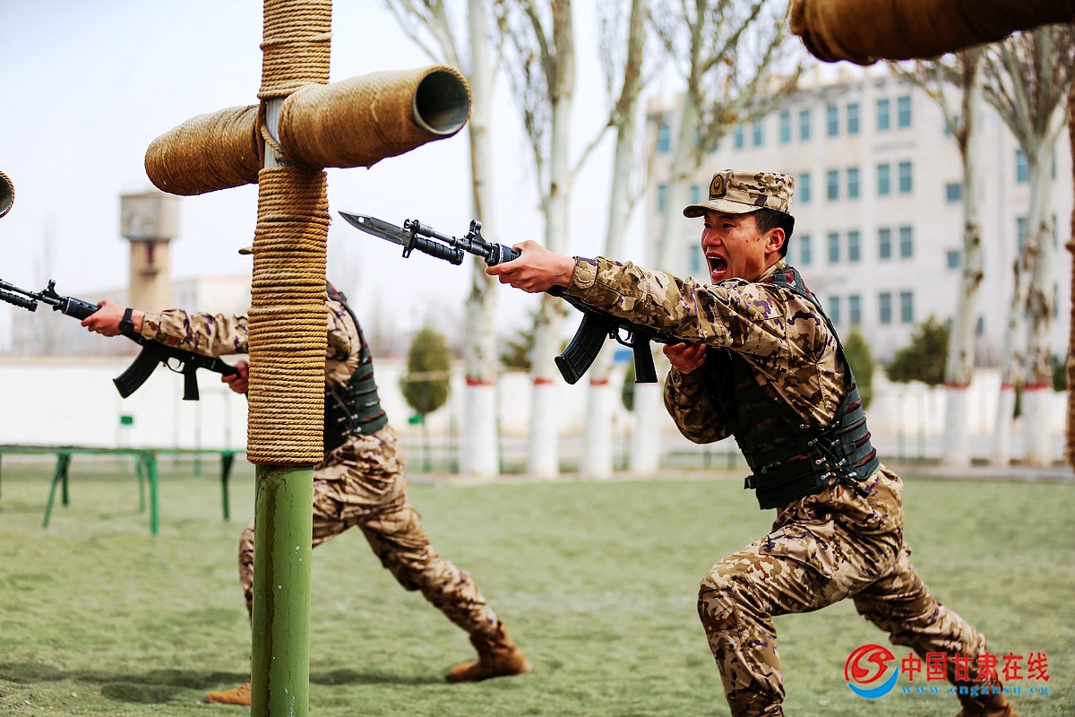 中国甘肃在线讯 “突刺,刺”“杀!杀!杀!”武警甘肃总队酒泉支队训练场上战意沸腾、杀气冲天。循声望去,原来是支队组织30余名教练员开展刺杀集训现场。官兵们手持钢枪,一招一式尽显新时代血性军人的阳刚之美。
