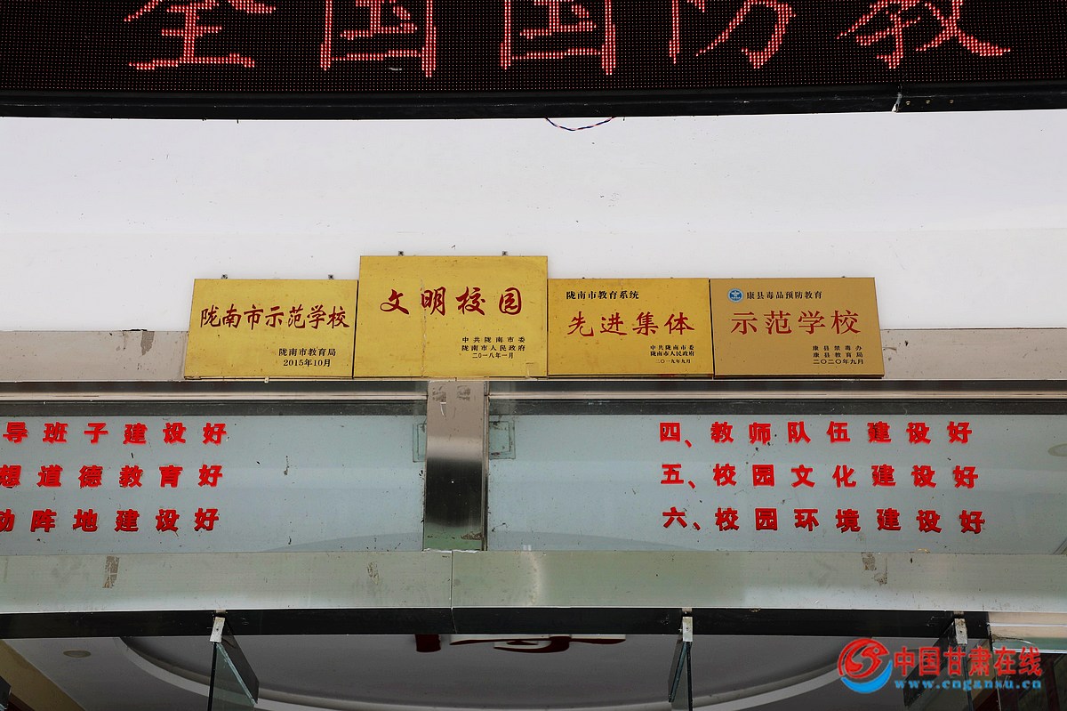 康县岸门口初级中学是2008年汶川地震后,由嘉峪关市、酒钢集团援建的一所初级中学。当年地震过后,康县群众的生活受到了严重的影响,因为岸门口、白杨等乡镇距县城约二十公里,且灾后道路有不同程度的损毁,这无疑切断了孩子们本就困难的求学之路。“可不能耽误孩子们的学习啊!不能让他们看不到希望!”于是酒钢集团和当地政府协商,修建一所服务半径为周边几个乡镇的初级中学。说干就干,在修建期间退役军人、民兵为施工队的主力,他们日夜工作、不辞辛苦,让迫切渴望得到知识的孩子们心头一暖,从此也埋下了一颗颗参军的种子。