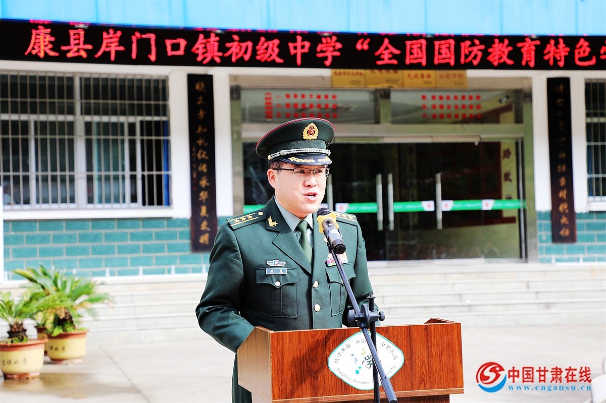 近日,教育部联合中央军委政治工作部正式授予康县岸门口初级中学“全国国防教育示范学校”称号。县人武部上校政委柴勇、县教育局副局长黄钧、县人武部政工科负责人李永德及康县岸门口初级中学校领导班子成员、全体师生参加了授牌仪式。